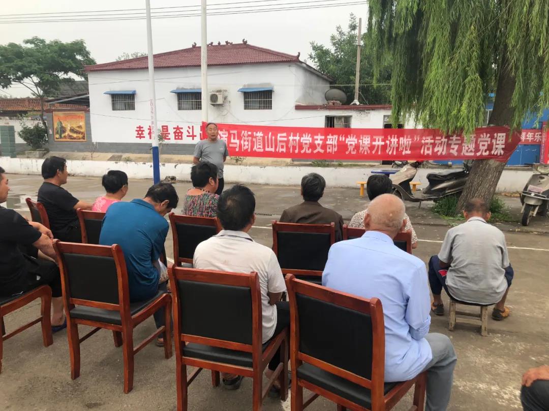 “今年是中国共产党成立99周年,从1921年成立以来,党已经走过了99年艰辛而辉煌的风雨历程……”这是马村区演马街道山后村党支部开展“党课开讲啦”活动现场,山后村全体党员都在聚精会神地听取村党支部书记张发展讲授党课,授课内容从“讲红色党史、忆峥嵘岁月、谈基层治理”等几个方面,上了一堂精彩的党课,现场不时响起热烈的掌声。