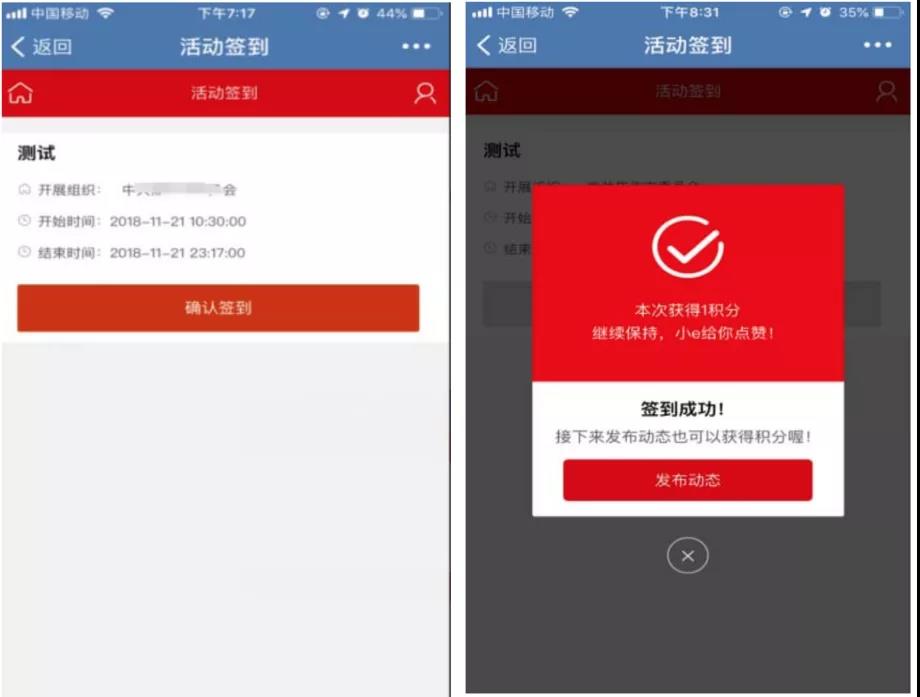 党组织发起流动党员组织活动和常规组织活动开展操作流程一致,只需在创建活动时,活动信息“允许流动党员签到”一栏选择“是”即可。活动签到时,党组织负责组织和指导流动党员通过手机或二代身份证签到。