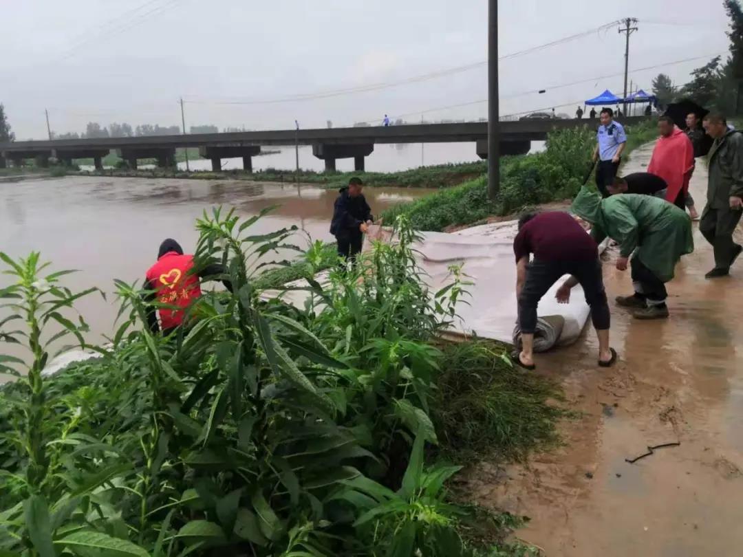 【不能松劲,抓紧堵口】沁阳市产业集聚区驻西向镇龙泉村第一书记张春光组织党员群众齐心协力加固堤坝。