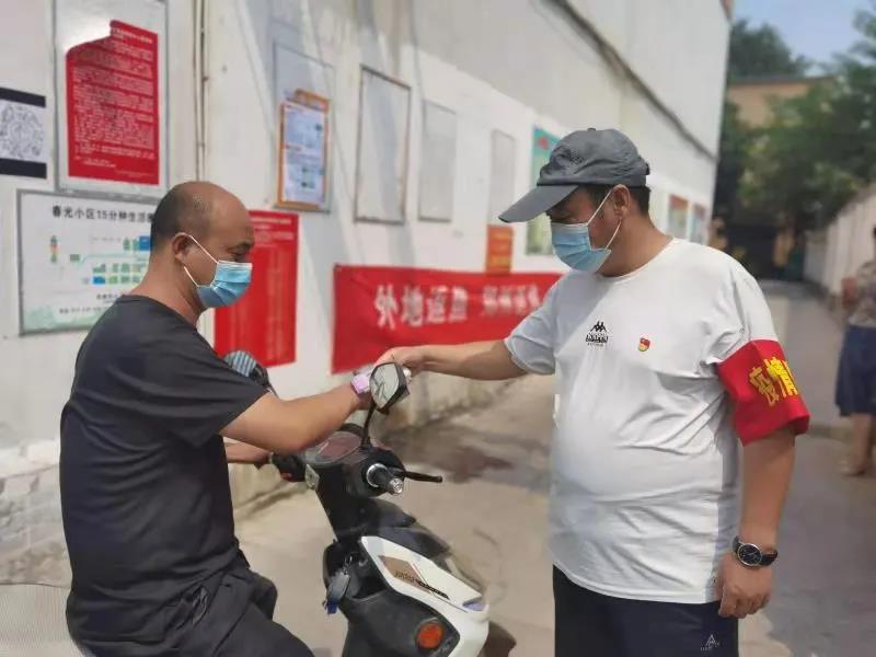 四是红色标识党员显担当。在设置“五红”党员先锋岗的过程中,要求岗位必须实现“六有”,即有“党员先锋岗”的标识、飘扬红色党旗、悬挂或张贴红色防疫标语、党员志愿者佩戴红色袖箍、佩戴党徽、签订红色承诺书,通过亮明标识、亮明身份,进一步增强党员参与防疫、服务群众的责任感和使命感。站南社区参与防疫卡点值守的党员每天都要坚持到中午12:30才交接班,轮值的党员宁愿错过正常吃饭的时间,也不愿意在中午下班高峰期因为交接班而影响卡点扫码速度,他们总说,“上班的人中午休息时间短,大太阳的,大家都等着回家吃饭,排队长了心焦!”